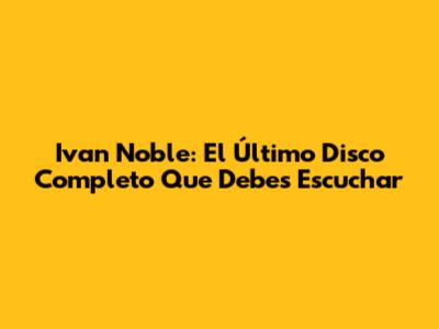 Ivan Noble: El Último Disco Completo Que Debes Escuchar