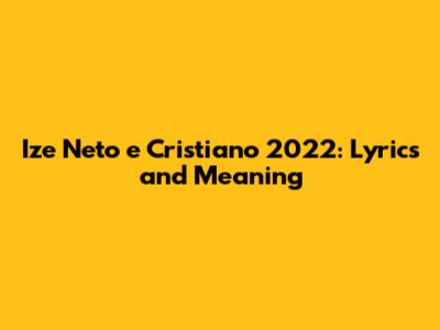 Ize Neto E Cristiano 2022: Lyrics And Meaning