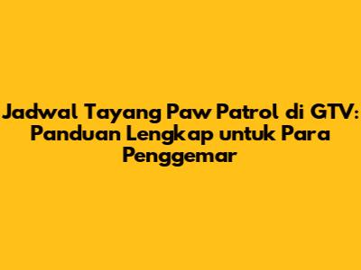 Paw Patrol adalah salah satu serial animasi yang paling digemari anak-anak di seluruh dunia, termasuk di Indonesia. Dengan karakter anjing yang menggemaskan dan petualangan seru yang mereka jalani, tidak heran jika Paw Patrol selalu menjadi favorit. Bagi para penggemar setia di Indonesia, khususnya yang sering menonton di GTV, mengetahui jadwal tayang Paw Patrol di GTV adalah hal yang sangat penting. Artikel ini akan memberikan panduan lengkap mengenai jadwal tayang Paw Patrol di GTV, serta informasi tambahan yang mungkin berguna bagi para orang tua dan penggemar setia. Jadi, buat kalian yang penasaran, yuk simak informasi lengkapnya!
