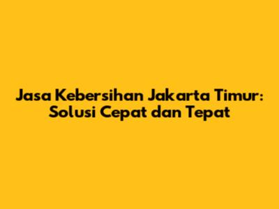 Jasa Kebersihan Jakarta Timur: Solusi Cepat Dan Tepat