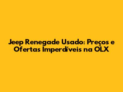 Jeep Renegade Usado na OLX: O Que Você Precisa Saber Sobre os Preços