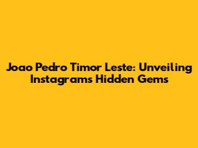 Joao Pedro Timor Leste: Instagram Secrets