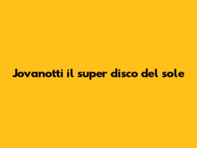 Jovanotti's Super Sun Disk: A Musical Journey