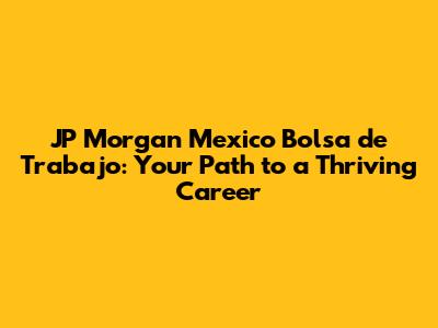 Hey there, future finance gurus! Are you eyeing a career in the financial world and dreaming of working for a global powerhouse? Look no further, because we're diving deep into the JP Morgan Mexico bolsa de trabajo – that's the job market, guys! JP Morgan is a massive player, and their presence in Mexico means some incredible opportunities. So, buckle up, because we're about to explore everything you need to know about landing a job with JP Morgan in Mexico, from the types of roles they offer to how to make your application shine. This guide is designed to be your go-to resource, helping you navigate the world of JP Morgan Mexico's job openings and get you one step closer to your dream career. We'll cover everything, so you'll be well-prepared to take on the challenges and excel in your professional journey. Let's get started!