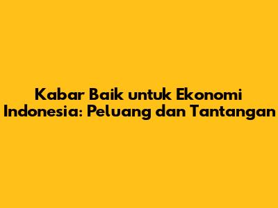 Kabar Baik Untuk Ekonomi Indonesia: Peluang Dan Tantangan