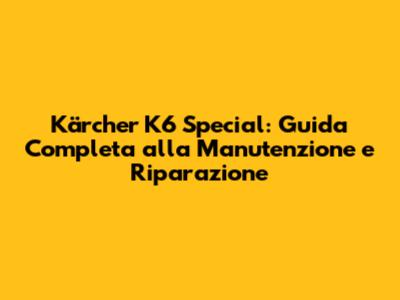 Kärcher K6 Special: Guida Completa Alla Manutenzione E Riparazione