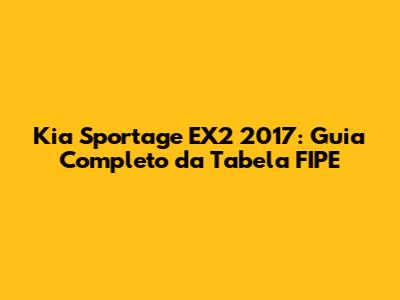 Kia Sportage EX2 2017: Guia Completo Da Tabela FIPE