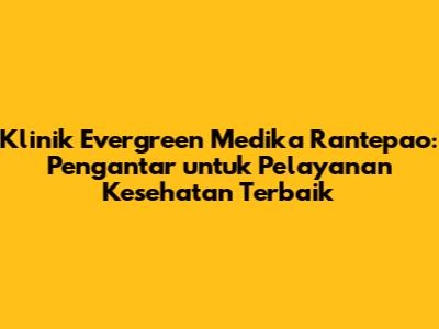 Klinik Evergreen Medika Rantepao: Pelayanan Medis Terbaikmu