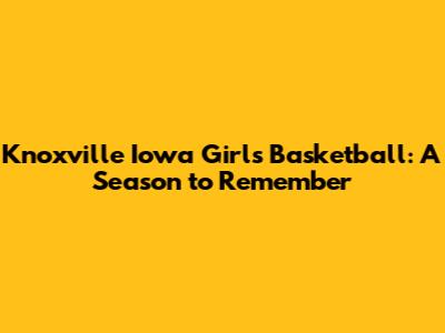 Knoxville Iowa Girls Basketball: A Season To Remember
