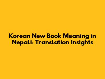 Korean New Book Meaning In Nepali: Translation Insights