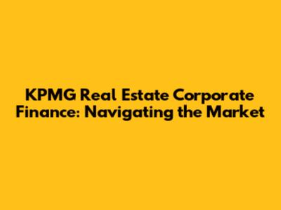 KPMG Real Estate Corporate Finance: Navigating The Market