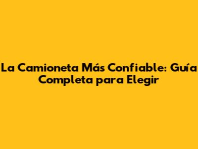 La Camioneta Más Confiable: Guía Completa Para Elegir
