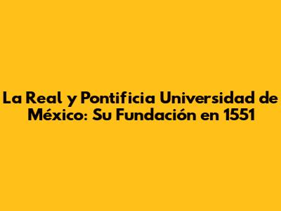 La Real Y Pontificia Universidad De México: Su Fundación En 1551