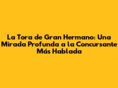 隆Hola a todos! Seguro que muchos de ustedes, al igual que yo, est谩n pegados a la pantalla siguiendo cada movimiento de los participantes de Gran Hermano. Y si hay alguien que ha generado mucho revuelo y conversaci贸n, esa es La Tora. En este art铆culo, vamos a sumergirnos en el universo de esta concursante, explorando qui茅n es, qu茅 la hace destacar y por qu茅 todos hablan de ella. Prep谩rense para un viaje lleno de chismes, an谩lisis y todo lo que necesitan saber sobre esta figura emblem谩tica del reality.