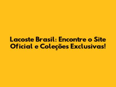 Lacoste Brasil: Encontre O Site Oficial E Coleções Exclusivas!