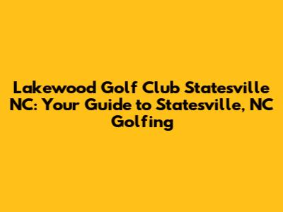 Hey golf enthusiasts! Are you looking for a fantastic golfing experience in Statesville, North Carolina? Look no further than the Lakewood Golf Club! This amazing course offers a blend of challenging play and beautiful scenery, making it a favorite for locals and visitors alike. In this article, we'll dive deep into what makes Lakewood Golf Club so special, covering everything from its course layout and amenities to membership options and nearby attractions. So, grab your clubs, and let's get started!