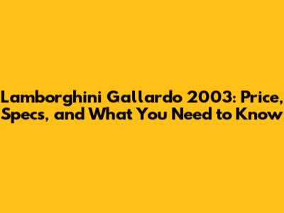 Lamborghini Gallardo 2003: Price, Specs, And What You Need To Know