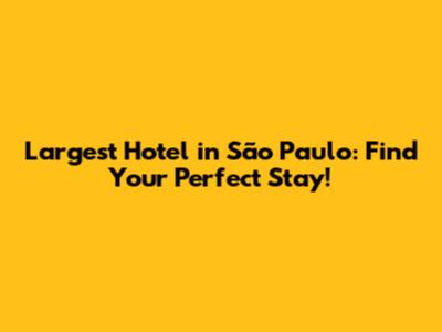 Largest Hotel In São Paulo: Find Your Perfect Stay!