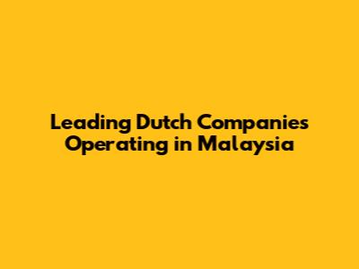 Unveiling the Giants: Key Dutch Players in the Malaysian Market