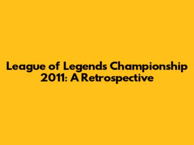 League Of Legends Championship 2011: A Retrospective
