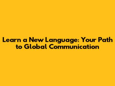 Learn A New Language: Your Path To Global Communication