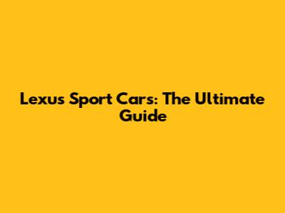 Lexus Sport Cars: The Ultimate Guide