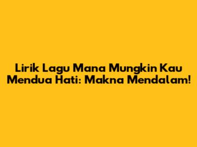 Hey guys! Kalian pernah gak sih dengerin lagu yang liriknya tuh bener-bener ngena banget di hati? Nah, kali ini kita bakal bahas tuntas salah satu lagu yang punya lirik mendalam, yaitu "Mana Mungkin Kau Mendua Hati". Lagu ini tuh bukan cuma sekadar alunan musik biasa, tapi juga punya makna yang bisa bikin kita merenung tentang cinta dan kesetiaan. So, buat kalian yang penasaran sama lirik dan makna di balik lagu ini, yuk simak terus artikel ini!