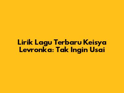 Hey, guys! Siapa sih yang lagi demam banget sama lagu-lagu galau tapi syahdu? Pasti kalian udah gak asing lagi dong sama nama Keisya Levronka. Cewek cantik bersuara merdu ini emang lagi hits banget dengan lagu-lagunya yang relateable sama kehidupan percintaan anak muda. Nah, kali ini kita mau bahas tuntas tentang lirik lagu terbaru Keisya Levronka, yang lagi booming abis, yaitu "Tak Ingin Usai". Lagu ini tuh bener-bener bikin hati meleleh dan nyanyian sejuta umat banget, deh!