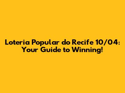 Loteria Popular Do Recife 10/04: Results, Prizes & How To Play!