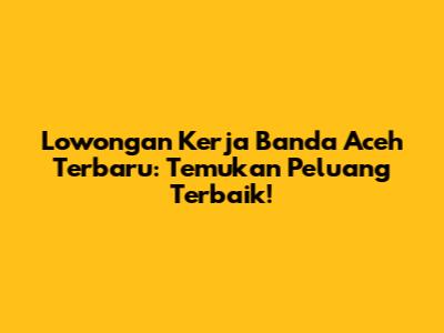 Lowongan Kerja Banda Aceh Terbaru: Temukan Peluang Terbaik!