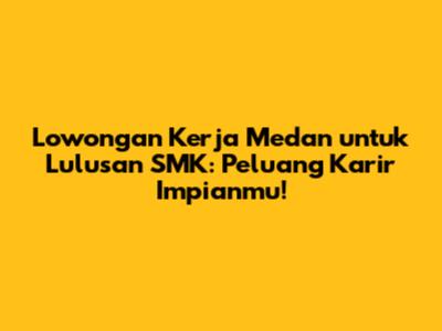Lowongan Kerja Medan Untuk Lulusan SMK