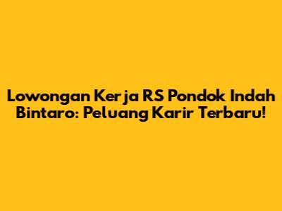 Lowongan Kerja RS Pondok Indah Bintaro: Peluang Karir Terbaru!