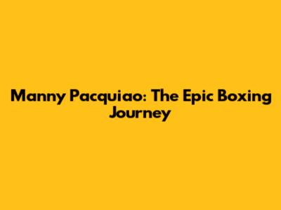 Manny Pacquiao: The Epic Boxing Journey