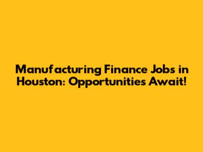 Manufacturing Finance Jobs In Houston: Opportunities Await!