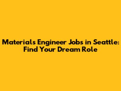Materials Engineer Jobs In Seattle: Find Your Dream Role