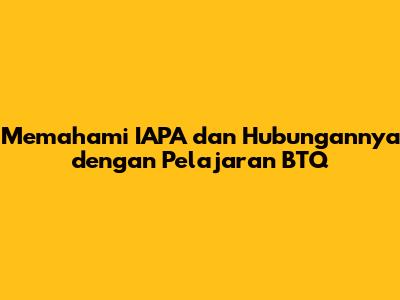 Memahami IAPA Dan Hubungannya Dengan Pelajaran BTQ