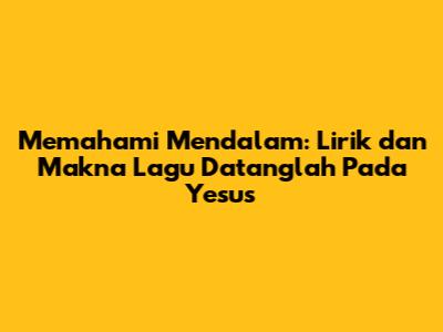 Semoga artikel ini bermanfaat bagi kita semua. Mari kita terus menggali makna dari lagu "Datanglah Pada Yesus" dan menerapkannya dalam kehidupan sehari-hari, agar kita semakin dekat dengan Tuhan dan semakin bertumbuh dalam iman.