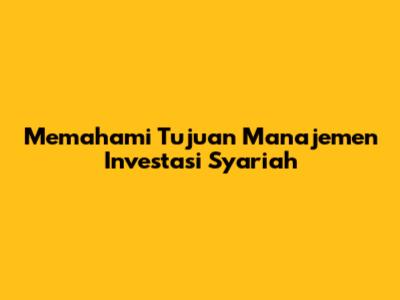 Memahami Tujuan Manajemen Investasi Syariah
