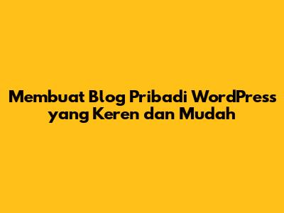 Membuat Blog Pribadi WordPress Yang Keren Dan Mudah