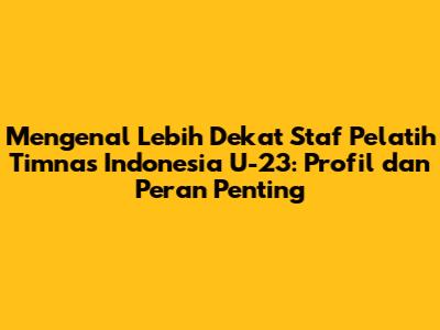 Setiap profil staf pelatih memberikan gambaran tentang pengalaman, keahlian, dan kontribusi mereka terhadap tim. Dengan mengenal mereka lebih dekat, kita dapat lebih memahami bagaimana mereka bekerja untuk membawa Timnas Indonesia U-23 meraih prestasi tertinggi.