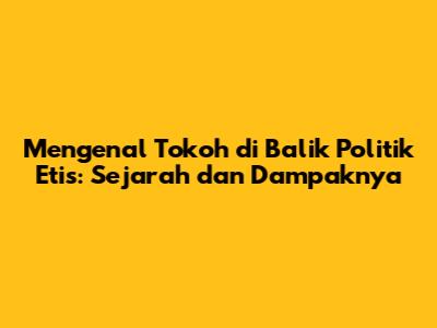 Mengenal Tokoh Di Balik Politik Etis: Sejarah Dan Dampaknya