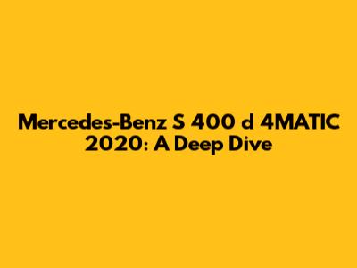 Hey there, gearheads! Let's talk about a real head-turner, the Mercedes-Benz S 400 d 4MATIC 2020. This luxury sedan is more than just a car; it's a statement. It’s got that classic Mercedes-Benz elegance combined with some seriously impressive tech and performance. Now, we're going to dig deep, exploring everything from its engine and features to what makes it stand out in a crowded market. If you're considering adding one to your life, or you're just a car enthusiast like me, this is the place to be. Buckle up, because we're about to take a detailed ride into the world of the S 400 d 4MATIC!