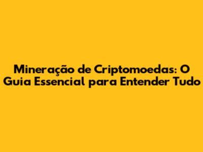 Mineração De Criptomoedas: O Guia Essencial Para Entender Tudo