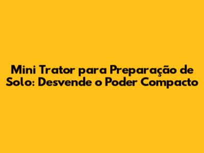 Mini Trator Para Preparação De Solo: Desvende O Poder Compacto