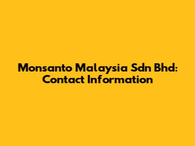 Monsanto Malaysia Sdn Bhd: Contact Information