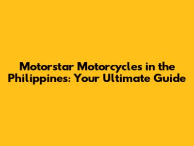 Motorstar Motorcycles In The Philippines: A Comprehensive Guide