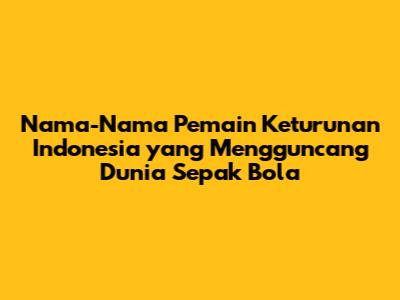 Guys, sepak bola Indonesia memang punya daya tarik tersendiri, ya kan? Nah, salah satu yang bikin makin seru adalah kehadiran para pemain keturunan Indonesia yang berkiprah di kancah sepak bola dunia. Mereka ini bukan cuma membanggakan nama Indonesia, tapi juga menunjukkan bahwa bakat sepak bola kita nggak kalah sama negara lain. Penasaran siapa aja pemain-pemain keturunan yang bikin kita semua bangga? Yuk, kita bedah satu per satu!