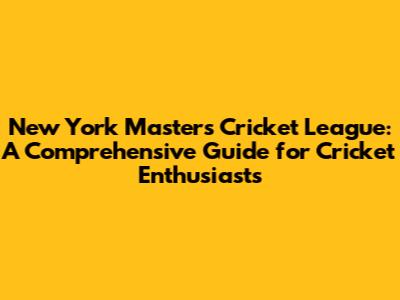 New York Masters Cricket League: Your Guide