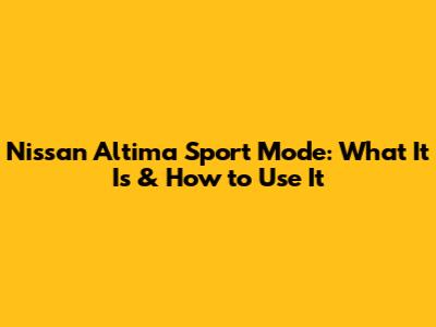 Hey guys! Ever wondered what that Sport Mode button in your Nissan Altima does? You're not alone! A lot of people are curious about it, so let's dive into everything you need to know about the Nissan Altima's Sport Mode. We'll cover what it is, how it works, and when you should use it to get the most out of your ride. Buckle up, because we're about to get sporty!