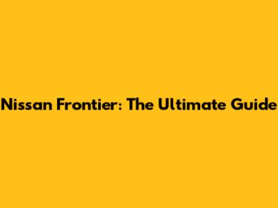 Nissan Frontier: The Scsc Guide